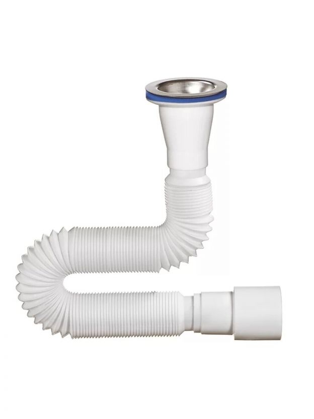 Гибкая гофрированная труба предназначена для слива воды из мойки или раковины. Она герметично соединяет сифон с канализационной сетью.