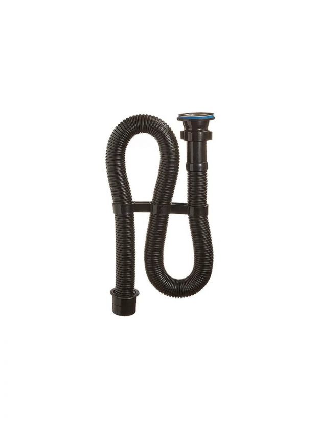 Гофрированный сифон – обладает простой конструкций, его часто используют, если под мойкой мало свободного пространства. Система может принять любую форму, ведь представлена гофрированной трубой, она легко складывается и раскладывается. Это компактный сифон для кухонной мойки.