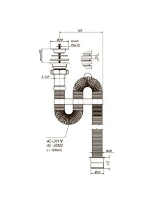 Сифон для мойки, 1500 мм, 1" 1/2х40/50, полипропилен, с выпуском, черный, Orio, АС-30122