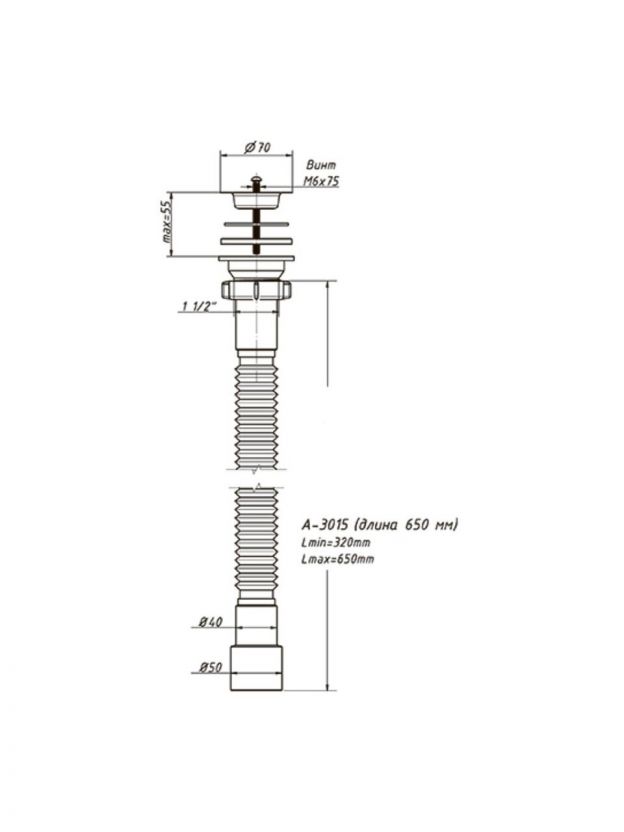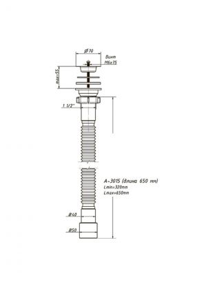 Сифон для мойки, 650 мм, 1" 1/2х40/50, полипропилен, с выпуском, Orio, А-3015