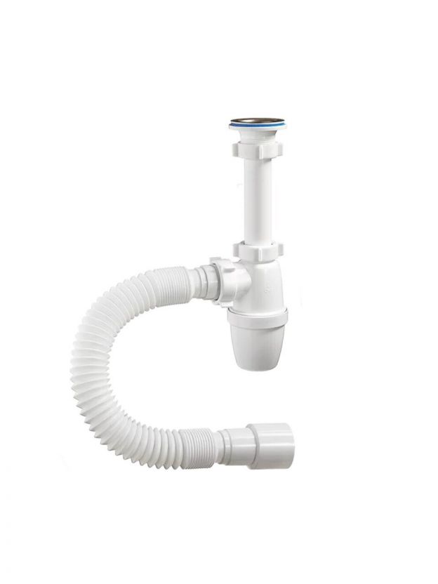 Сифон прост в установке и выполняет свою главную функцию - формирование гидрозатвора для отсечения неприятных запахов из канализации.