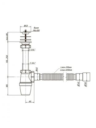 Бутылочный сифон выглядит как бутылка с горизонтальным ответвлением. Для подключения этой конструкции необходимо немного свободного пространства. Вода, которая находится в колбе, предупреждает проникновение канализационных запахов в помещение.
