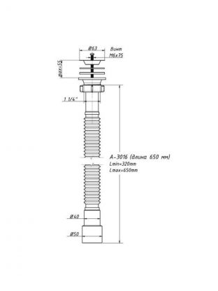 Сифон для мойки, 650 мм, 1" 1/4х40/50, полипропилен, с выпуском, Orio, А-3016