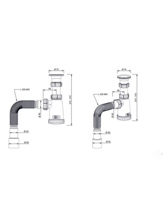 • Длина гофрированного отвода: (мин.-макс.) 320-800 мм;