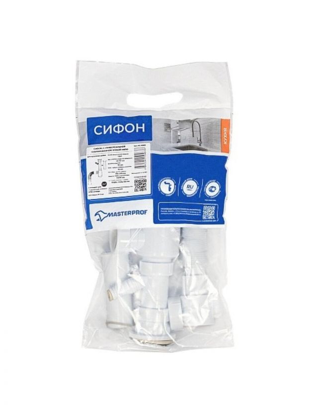 Сифон MasterProf 2 в 1 бутылочного типа применяется для соединения кухонных моек с канализационной системой. На данном сифоне реализован разборный выпуск, который оснащён решёткой из нержавеющей стали. Подходит для моек с диаметром сливного отверстия 48-52 мм. В комплектацию сифона входит 2 патрубка : с отводом для подключения сливного шланга бытовой техники (диаметр 19-22 мм) и без отвода, что делает сифон универсальным, позволяя выбрать нужную для подключения комплектацию.