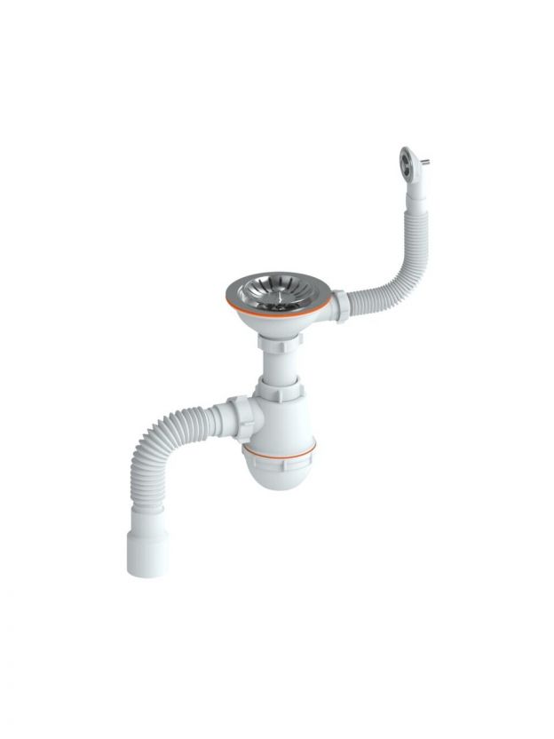 Сифон для мойки, круглый перелив, пластиковый шток, РМС, СЕМ-К (П)