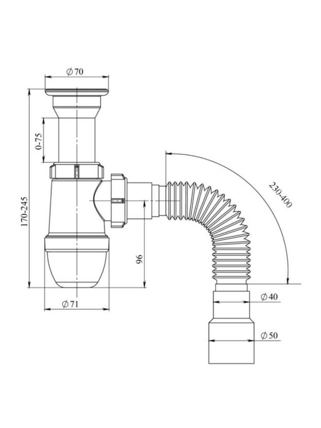 • Диаметр подключения к канализационной трубе: 40 мм.