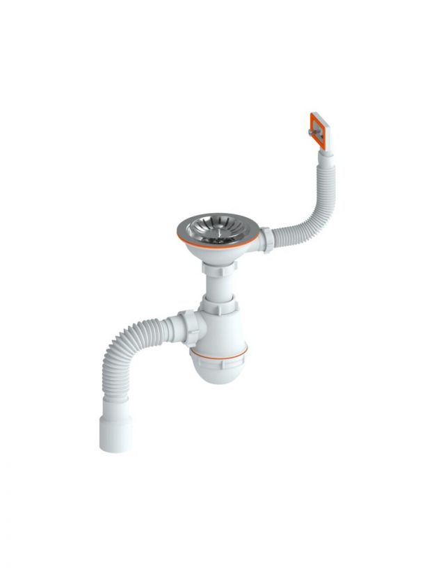 Сифон для мойки, прямоугольный перелив, пластиковый шток, РМС, СЕМ-П (П)