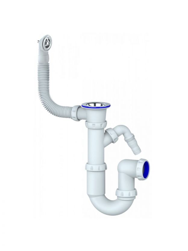 Прямоточный сифон Unicorn Y441V применяется для соединения кухонных моек, имеющих переливное отверстие, с канализационной системой. На данном сифоне реализован разборный выпуск с подключаемым к нему переливным патрубком.