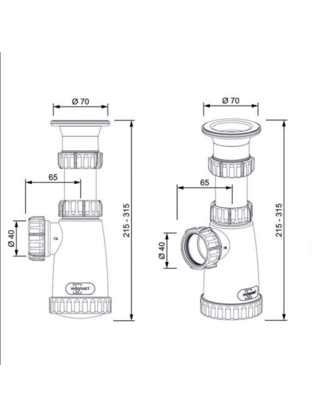 Сифон для мойки, трубный, 1 1/2", полипропилен, с выпуском, 40 мм, Инкопласт, BS1000