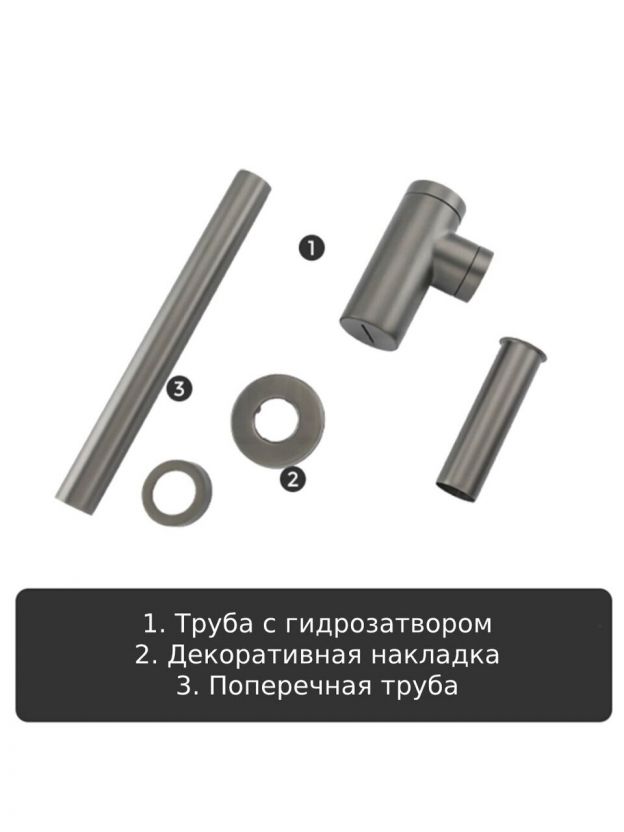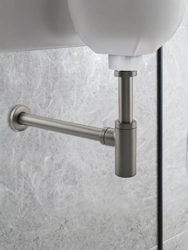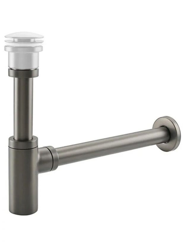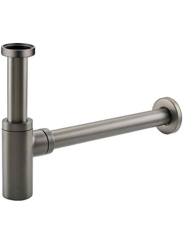 - Матовый серый цвет сифона придает ему изысканность и современность, легко сочетаясь с различными моделями раковин из санфаянса.