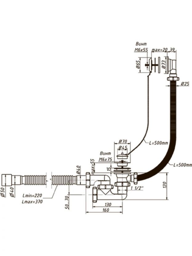 • Длина гибкой трубы, мм: 370;