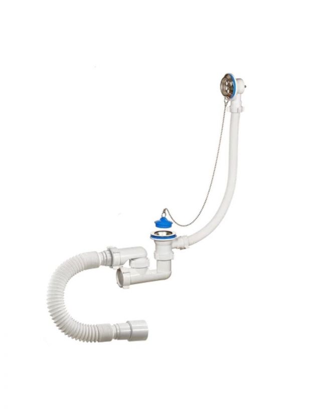 Сифон для ванны, 40х40/50, с выпуском, с переливом, круглый перелив, Orio, А-80089