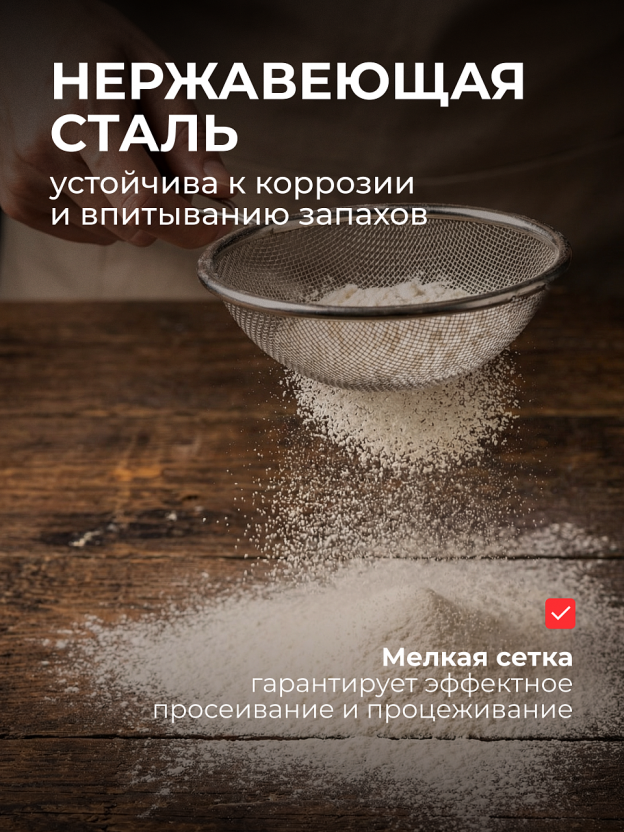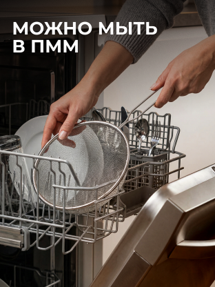 Сито металлическое, материал крепкий и не подвержен коррозии. Можно мыть в посудомоечной машине.