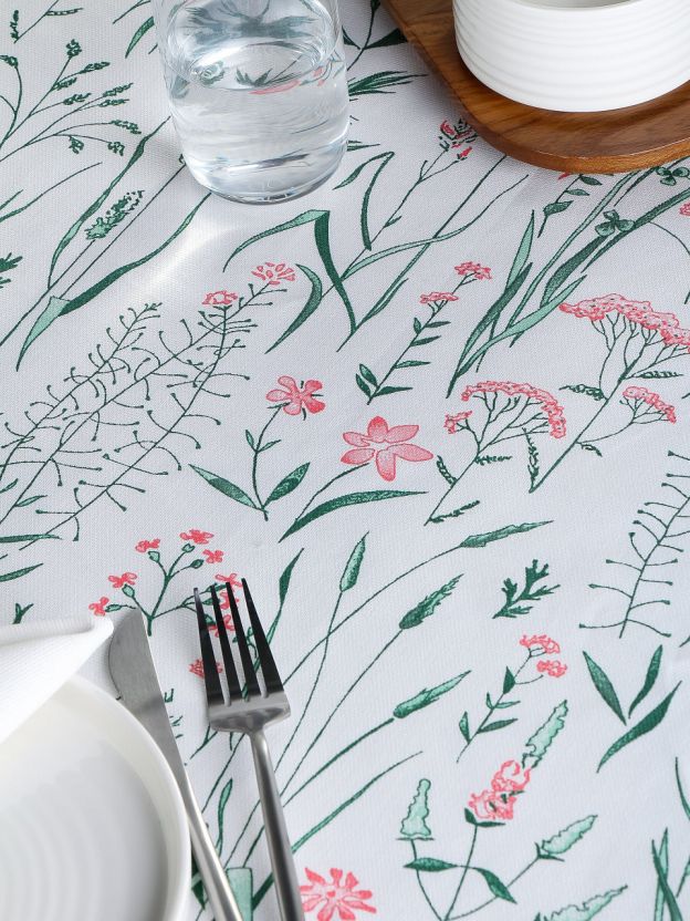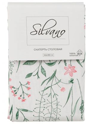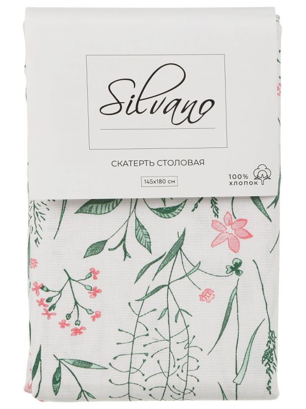 Скатерть 145х180 см Silvano «Весна» — 100% хлопок, свежий зеленый цвет и цветочный принт. Идеальный выбор для уютной кухни или дачи, легко стирается и долго сохраняет вид.