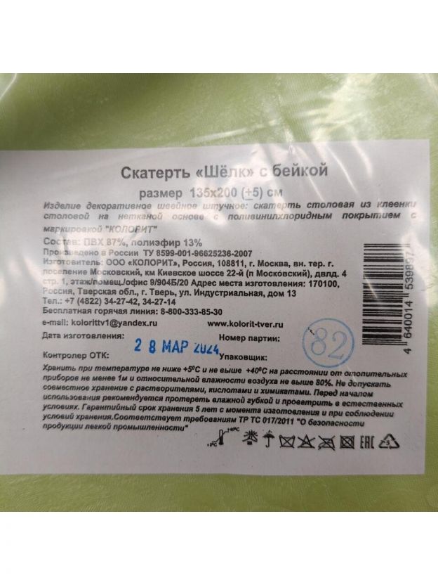 Скатерть Колорит, Шелк, 1.35х2 м, ПВХ, край бейка, (+-5 см)