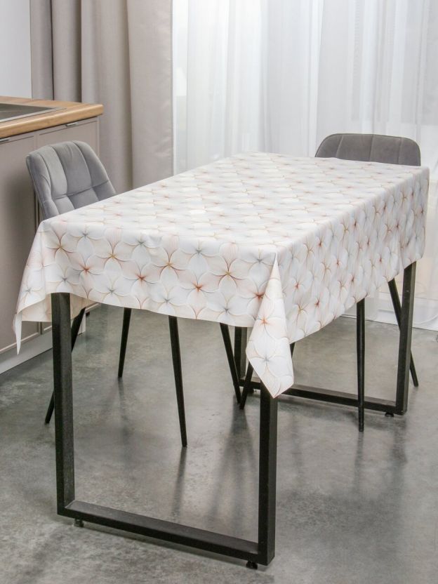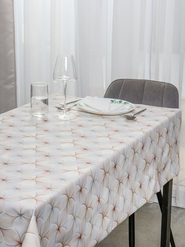 Размер скатерти — 140х180 см, форма — прямоугольная, подходит для большинства стандартных обеденных столов.
