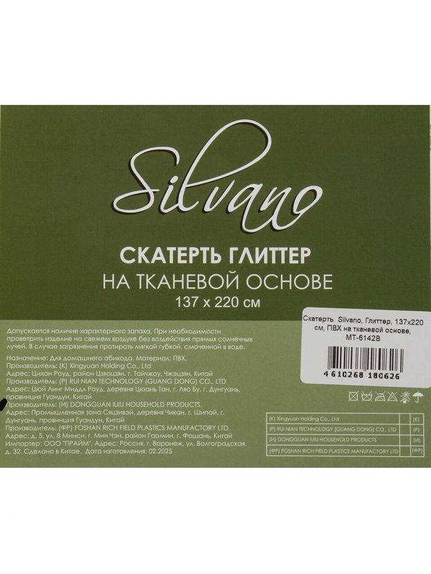 Покупка скатерти Silvano "Глиттер" позволит быстро и просто обновить интерьер, создать атмосферу уюта и подчеркнуть заботу о чистоте и порядке в доме. Высокое качество материалов гарантирует долговечность, а современный дизайн сделает сервировку стола стильной и запоминающейся. Выбор такой скатерти — это практичное решение для тех, кто ценит комфорт, эстетику и функциональность в повседневной жизни.