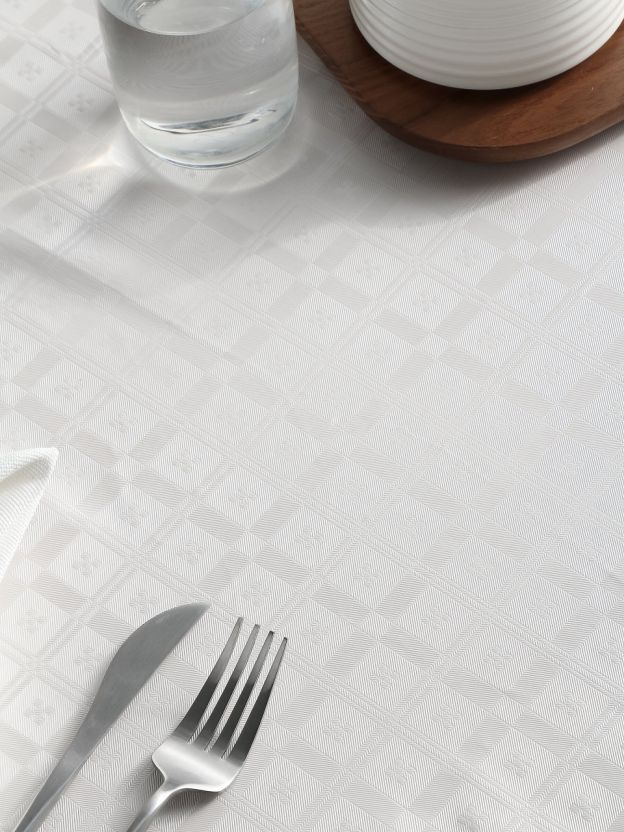 Размер скатерти — 137х110 см, форма прямоугольная, подходит для стандартных обеденных столов.