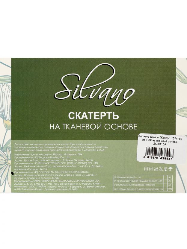 Скатерть выполнена из ПВХ на тканевой основе, что обеспечивает прочность и устойчивость к повреждениям. Ее можно использовать как в помещении, так и на даче или террасе.