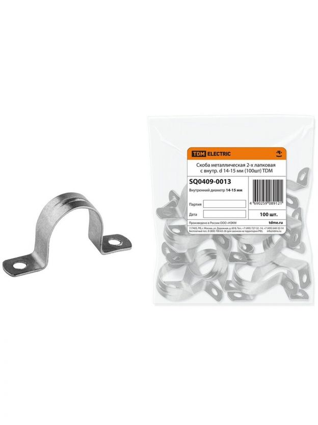 Скоба металлическая 14-15 мм, двухлапковая, TDM Electric, SQ0409-0013