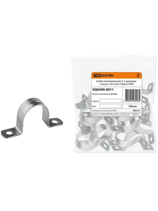 Скоба металлическая 8-9 мм, двухлапковая, TDM Electric, SQ0409-0011