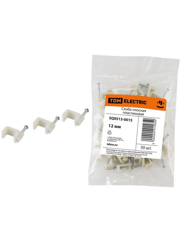 Скоба пластик, 12 мм, 50 шт, плоская, TDM Electric, SQ0513-0015