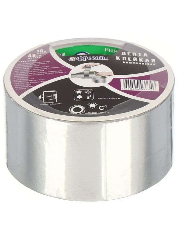 Лента алюминиевая предназначена для изоляции и герметизации швов соединений фольгированной изоляции. Может применяться для соединения стыков панелей, герметизации соединительных швов труб, воздуховодов, проклеивания швов между отражающей изоляцией в целях снижения теплопотерь, для надежной защиты частей оборудования от проникновения пара, грязи и пыли. Сфера применения: для бань, саун, воздуховодов, стыков теплоизоляции на трубах отопления.
