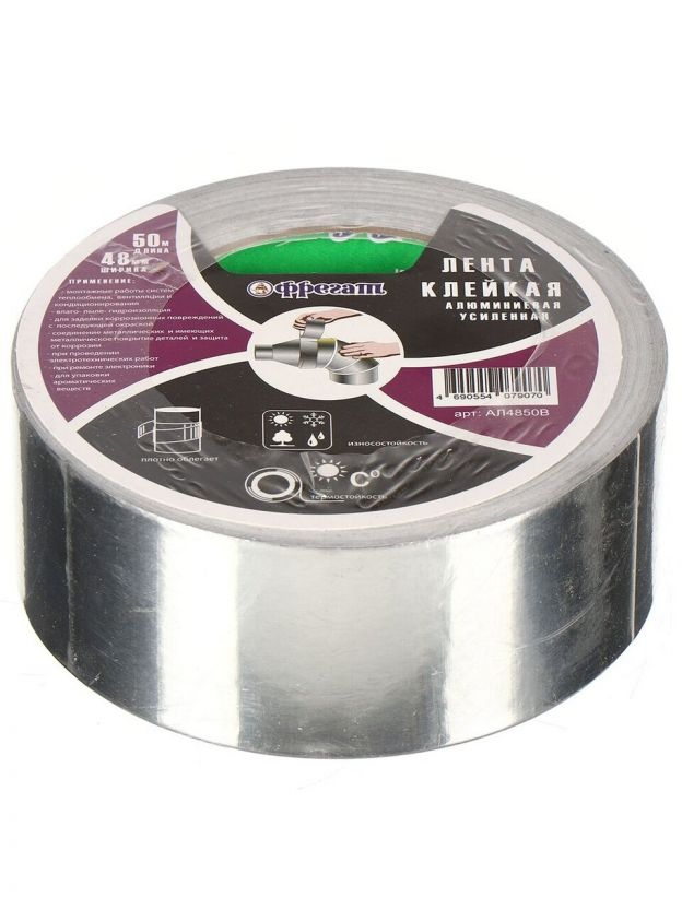 Алюминиевая клейкая лента представляет собой основу из алюминиевой фольги, на которую нанесен акриловый клеевой слой. Лента поставляется в рулоне, при этом клеевой слой защищен дополнительным вкладышем (защитным слоем). Этот скотч идеально подходит для широкого спектра применений, включая гидроизоляционные и теплоизоляционные работы. Так как алюминиевая лента превосходно защищает от проникновения грязи, влаги и пара, ее часто используют для защиты поврежденных частей оборудования. Как и любая фольга, она отражает свет и солнечные лучи. Это свойство помогает защищать с ее помощью различные пластмассовые детали от деформации при нагревании на солнце. Алюминиевая лента нередко используется в строительных и ремонтных работах.