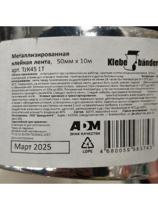 Скотч 50 мм, основа металлизированная, 10 м, Klebebander, TZК451T