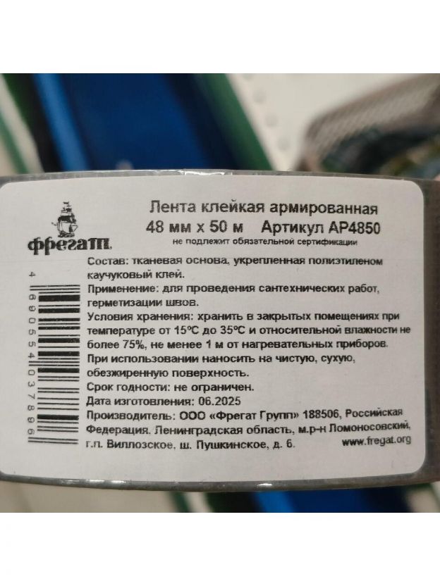 Скотч армированный 48 мм, основа полимерная, 50 м, Фрегат, АР4850