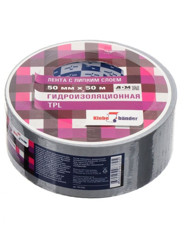 Скотч армированный 50 мм, серый, основа полипропиленовая, 50 м, Klebebander, TPL550S