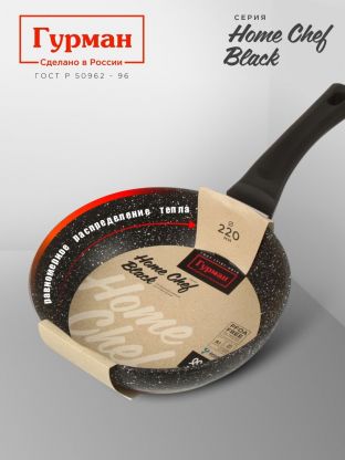 Сковорода алюминий, 22 см, антипригарное покрытие, Гурман, HomeChef, Black, индукция
