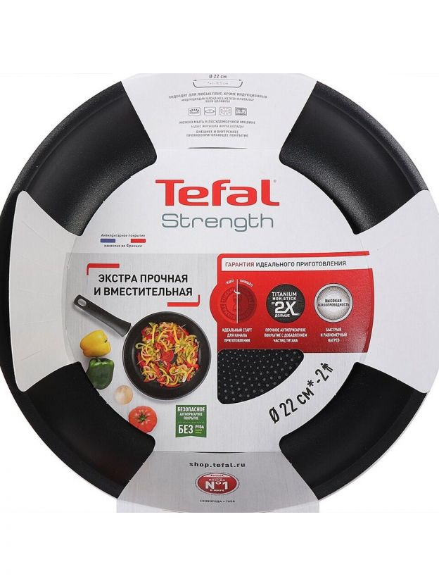 Сковорода Tefal Strength 22 см — антипригарное покрытие Titanium, премиум-алюминий, идеальный выбор для быстрого и здорового приготовления без масла.