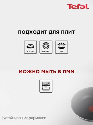 • Титановое антипригарное покрытие Tefal — пища не прилипает, уход занимает минуты, подходит для диетического питания
