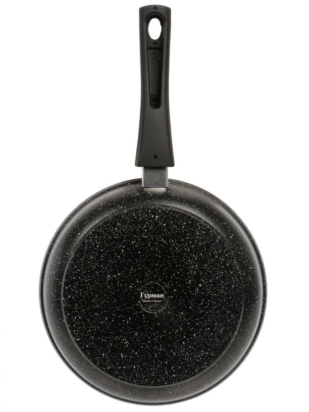 Сковорода Гурман FIT диаметром 24 см сочетает прочный литой алюминий и современное гранитное антипригарное покрытие. Благодаря высокой теплопроводности материал быстро нагревается, а толстое дно (5,2 мм) обеспечивает равномерное приготовление без деформации. Такой вариант идеально подойдет для жарки мяса, рыбы, курицы — продукты не прилипают, сохраняют вкус и сочность, а уход занимает минимум времени.