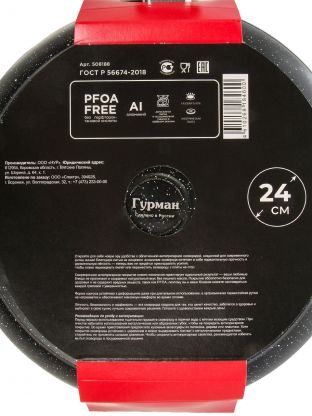 - Оптимальный размер (24 см, глубина 60 мм, толщина дна 5,2 мм) и легкий алюминий — быстрое и равномерное нагревание.
