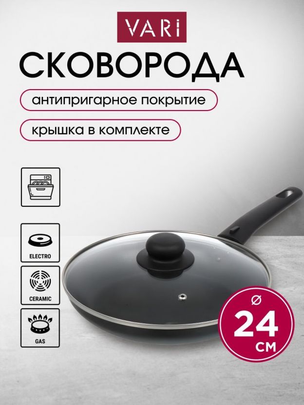 Сковорода алюминий, 24 см, антипригарное покрытие, Vari, Лучшая цена, с крышкой, KSKR14224
