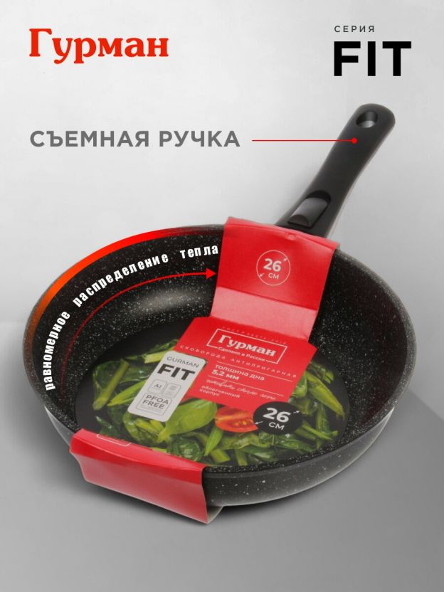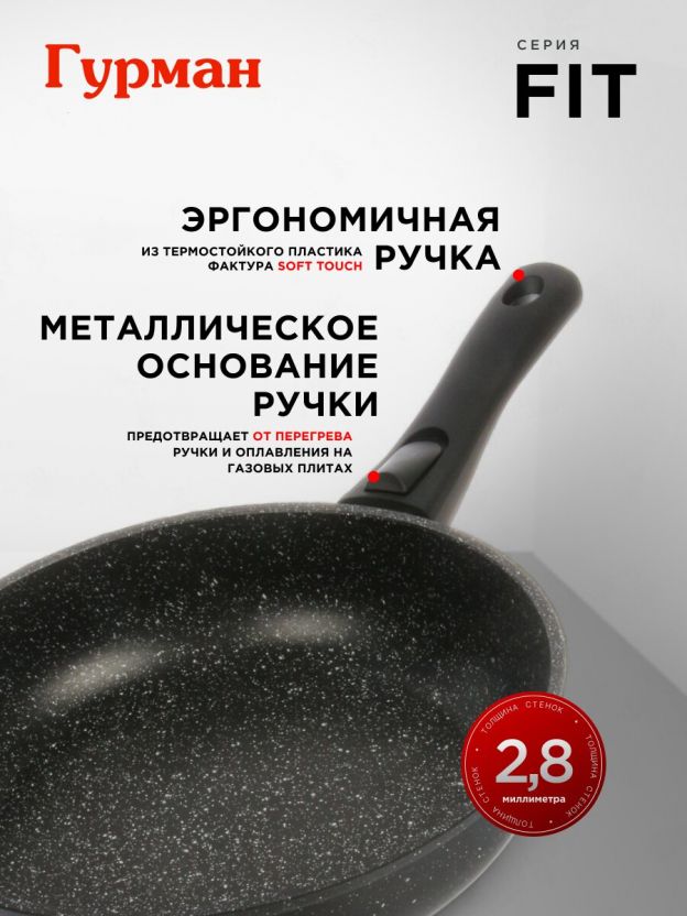 Выбирайте сковороду Гурман FIT, чтобы готовить любимые блюда быстро, удобно и без хлопот. Закажите сейчас — гарантия производителя 12 месяцев, выгодная цена и быстрая доставка по России.