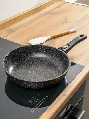 В отличие от обычных алюминиевых сковород, эта модель оснащена современным гранитным покрытием: пища не прилипает, уход занимает минимум времени. Если вы ищете, что лучше для жарки мяса или рыбы, обратите внимание на глубину и диаметр — здесь оптимальные параметры для семейного ужина или приготовления блюд на компанию. Можно мыть в посудомоечной машине, что экономит время на кухне.