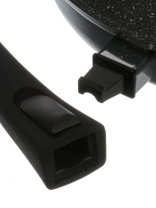 Съемная ручка облегчает хранение, позволяет использовать сковороду в духовке, удобно брать с собой на дачу или в поездки.