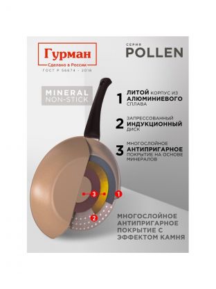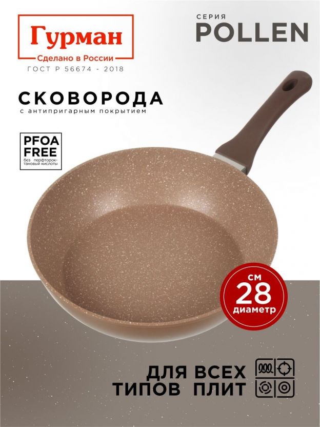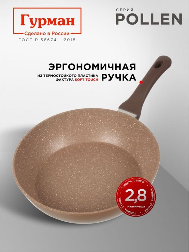 Сковорода алюминиевая 28 см с антипригарным гранитным покрытием Гурман Pollen: готовьте без пригорания, экономьте время и силы на кухне.