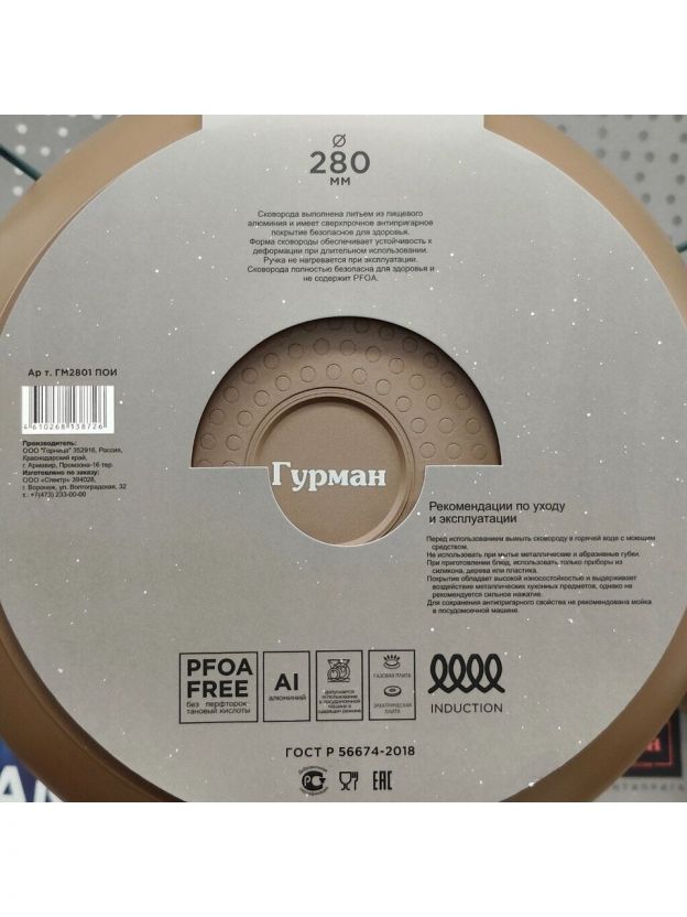 • Оптимальный размер 28 см, прочный алюминий, толщина дна 4,4 мм — срок службы до 3 лет по гарантии