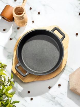 - Компактный размер 18х3,5 см и толщина дна 3 мм — удобно готовить небольшие порции, подходит для духовки, газовых и электрических плит.