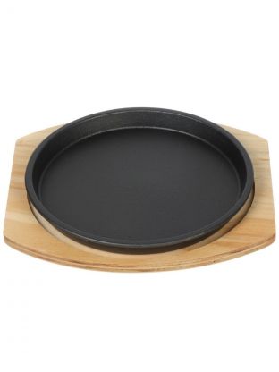 Сковорода круглая, диаметр 21,5 см, высота борта 2 см, диаметр дна 20 см, толщина дна 3,5 мм, толщина стенок 3 мм. В комплекте бамбуковая подставка. Крышка и съемная ручка не предусмотрены.
