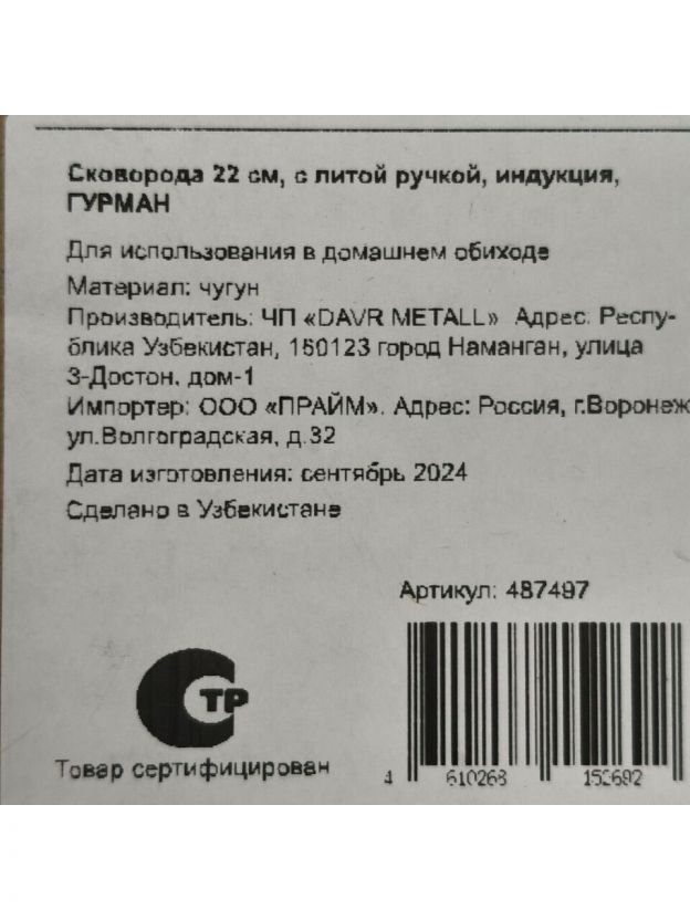 Чугунная сковорода 22 см Гурман DavrMetall для индукции: равномерный нагрев, литая ручка, срок службы 30+ лет. Лучший выбор для здорового питания.
