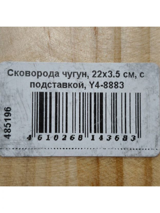 Чугунная сковорода 22х3,5 см с бамбуковой подставкой — долговечная посуда для мяса, рыбы и курицы. Идеальный выбор для дома и дачи.