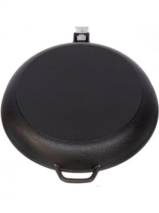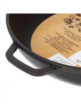 - Долговечность: цельнолитой чугун с толстым дном 3,8 мм — идеален для жарки и томления без деформаций