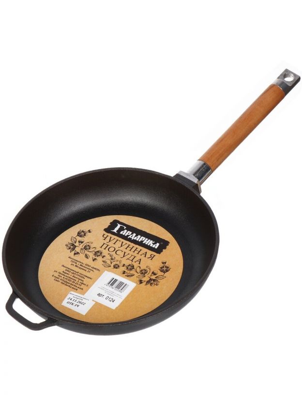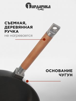 Сковорода чугун, 24 см, Гардарика, съемная ручка, с деревянной ручкой, индукция, 0124