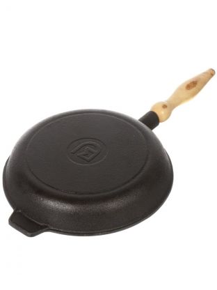 Чугунная сковорода 24 см DavrMetall: идеальный выбор для индукции, съемная деревянная ручка, срок службы 30+ лет, выгодно для дома и дачи.
